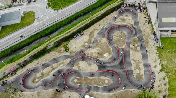 Ein Pumptrack ist ein asphaltierter Rundkurs, bestehend aus Wellen und Kurven für Velofahrer, Skateboarder, Scooterfahrer oder Inline-Skater jeder Altersklasse.